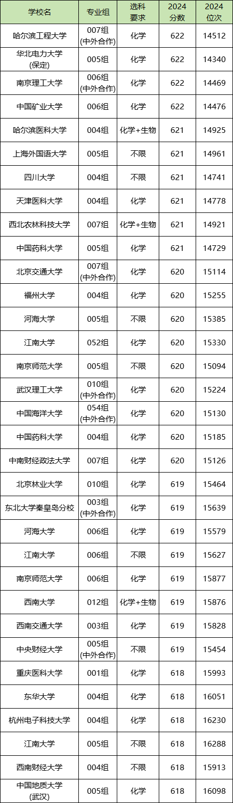 一、物化生620分左右大学一览表