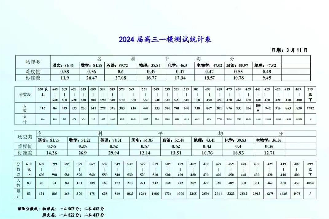 南昌市对于一模考试的划线均为预测分数线,2022年-2023年都是按照文理科、一本二本进行划定的,2024年开始按照物理类、历史类划分,大家可以参考一下。
