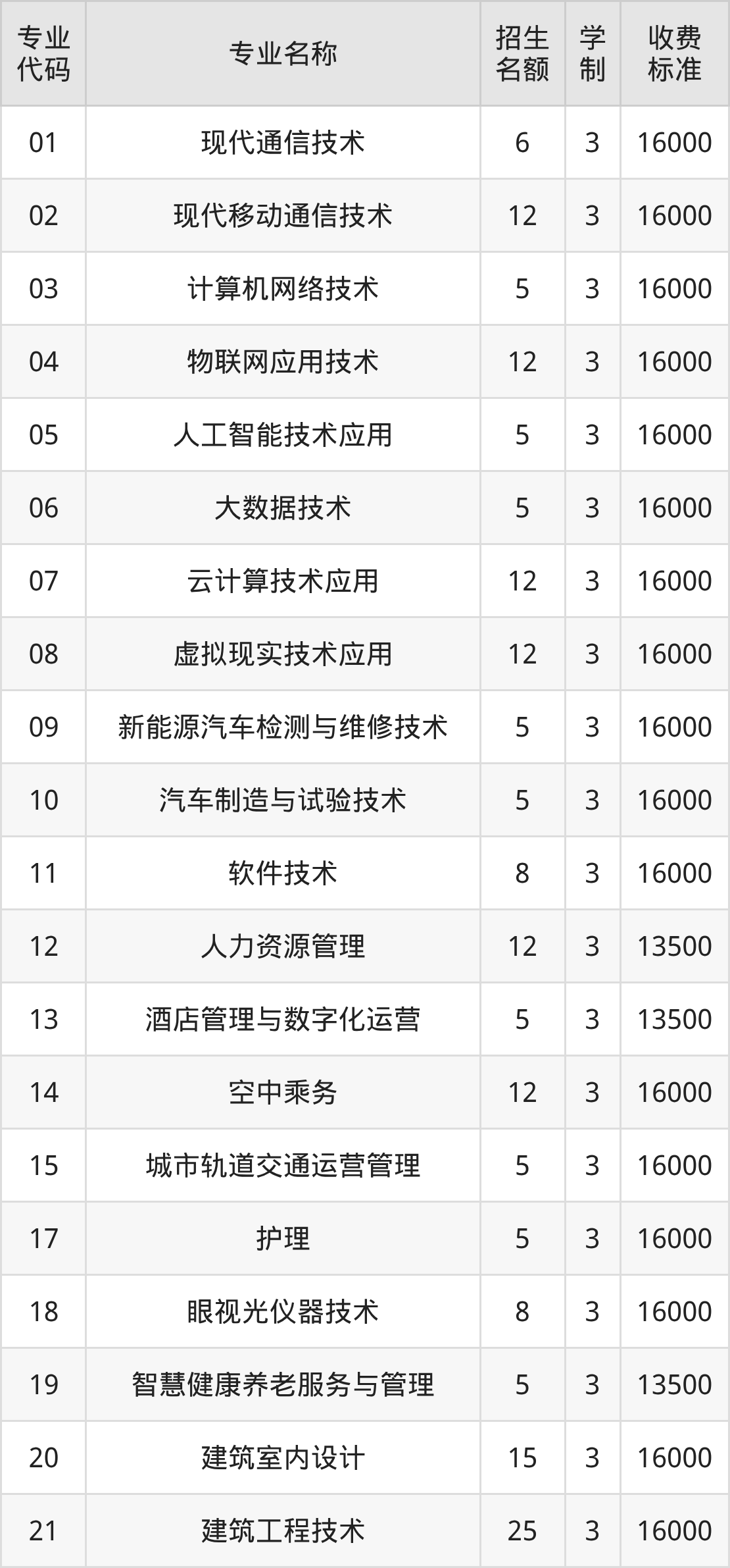 | 01 | 现代通信技术 | 4 | 3 | 16000 |