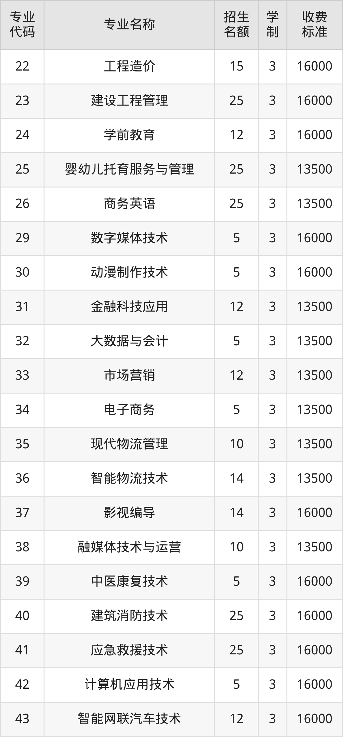 | 21 | 建筑工程技术 | 16 | 3 | 16000 |