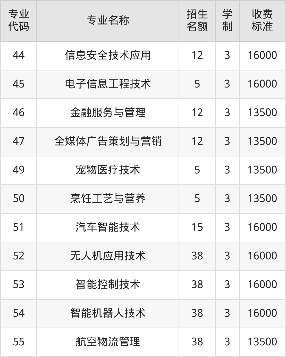 | 45 | 电子信息工程技术 | 4 | 3 | 16000 |