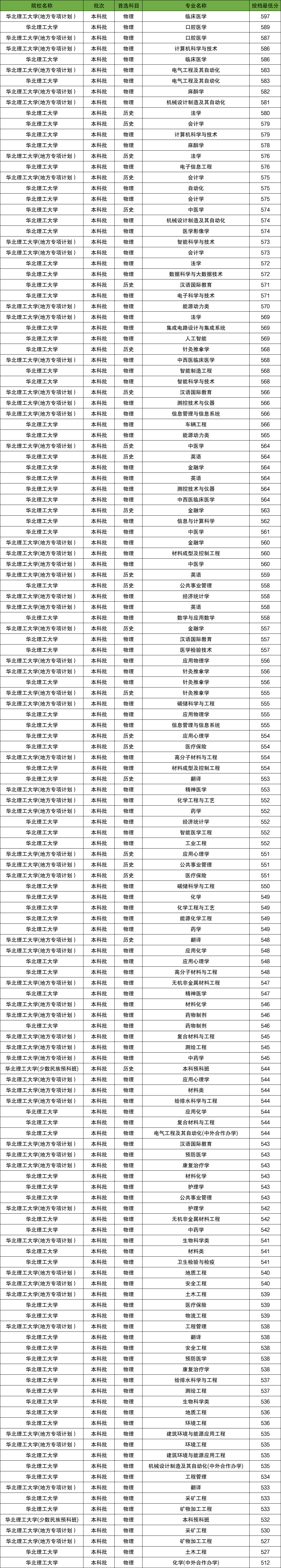 2025年华北理工大学在省内招生最低分数范围为512分-597分,各科类最低分详情如下: