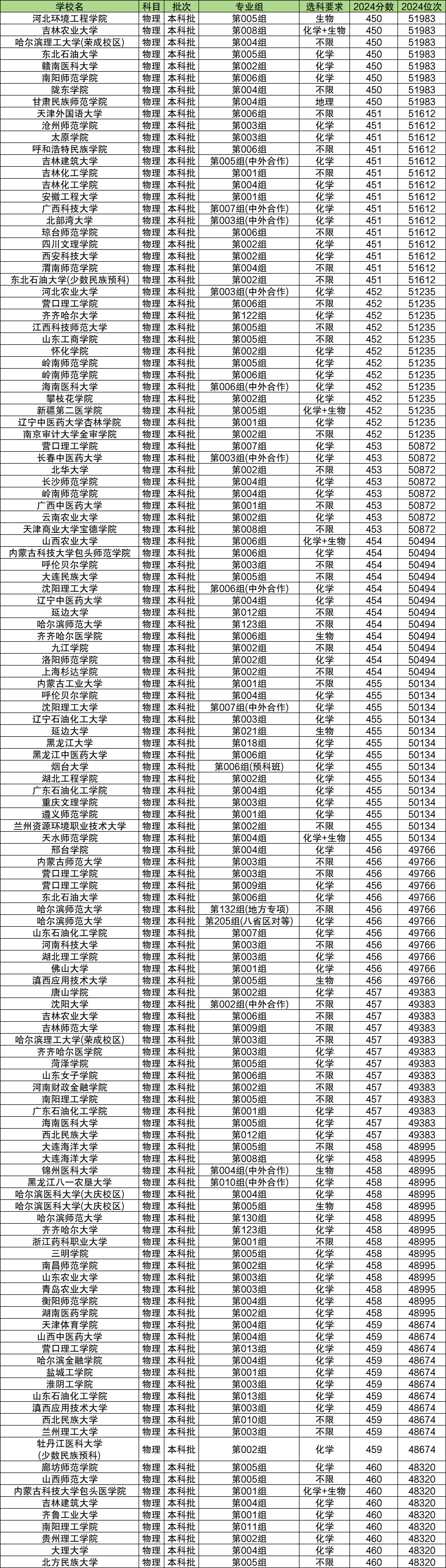 黑龙江高考5万名左右(48000~52000名)能报考的大学名单一览表(物理类):