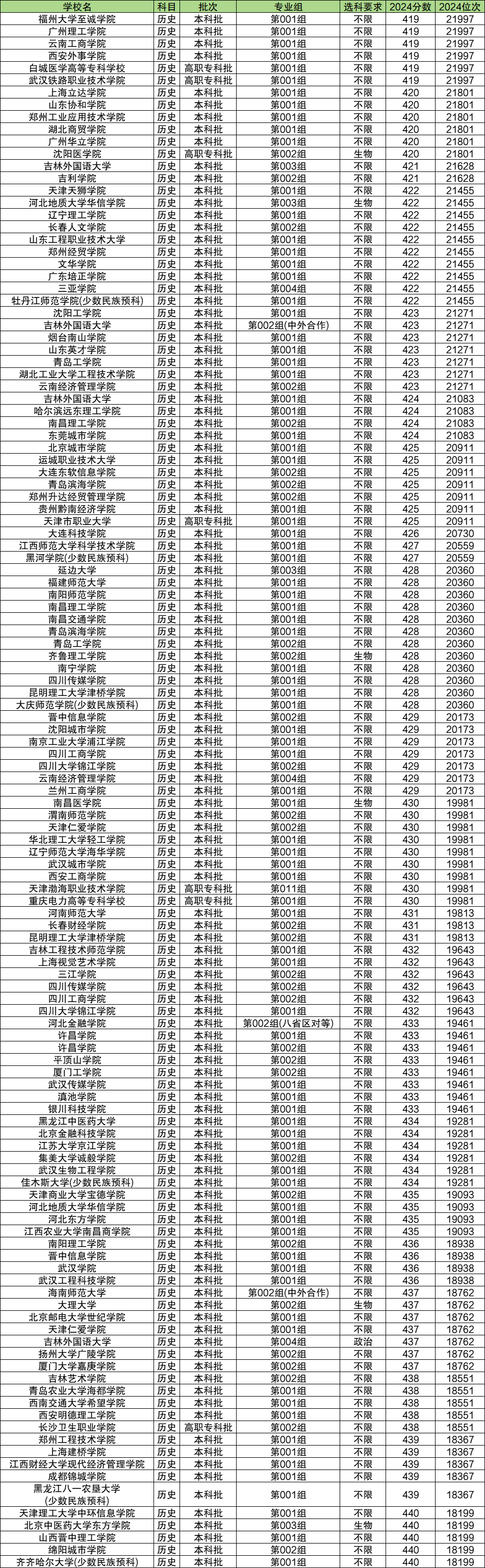 黑龙江高考历史类2万名左右能报考的大学中位次排名较低的有福州大学至诚学院001组、广州理工学院001组、云南工商学院001组等,2024年最低分419分,对应排名是21997名。另外最接近2万名的是四川大学锦江学院002组、云南经济管理学院004组、兰州工商学院001组等,2024年最低分429分,排名是20173名。