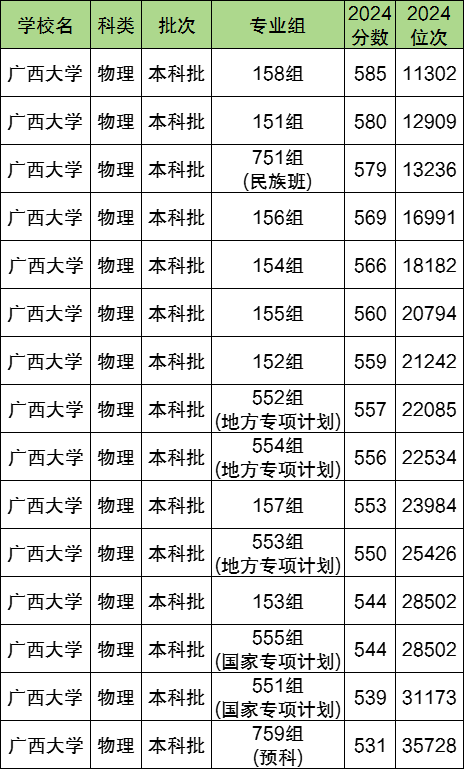 下面整理了广西双一流大学2024年在本区的录取分数线,详情如下: