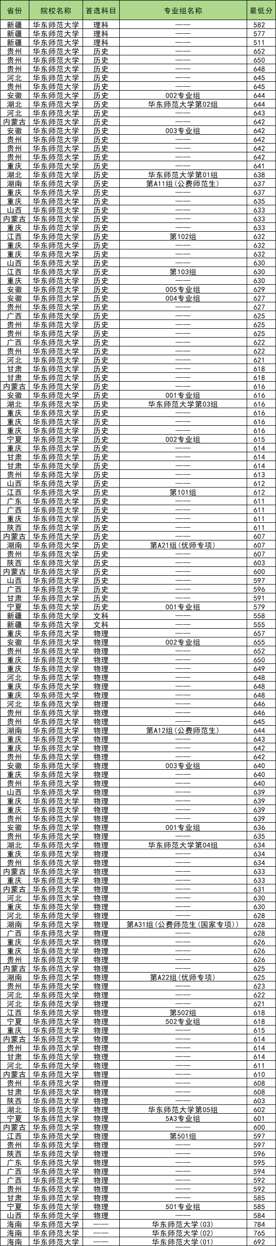 下面分专业为大家介绍2025华东师范大学录取分数线情况: