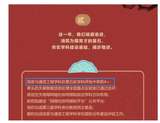 北京理工大学信息与电子学院在新年贺词中提到,信息与通信工程学科在第五轮学科评估中荣获A+。