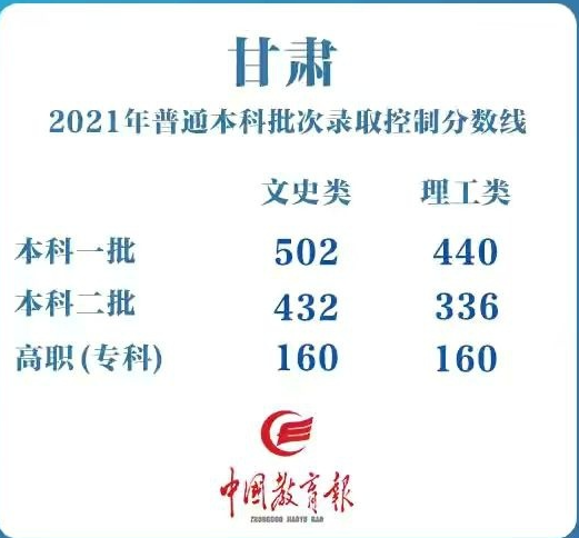 甘肃:一本线为理工类440分,文史类502分