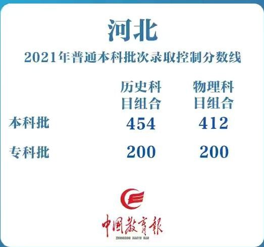 河北:本科批线为历史类454分。