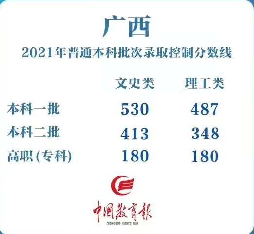 广西:一本线为理工类487分,文史类530分