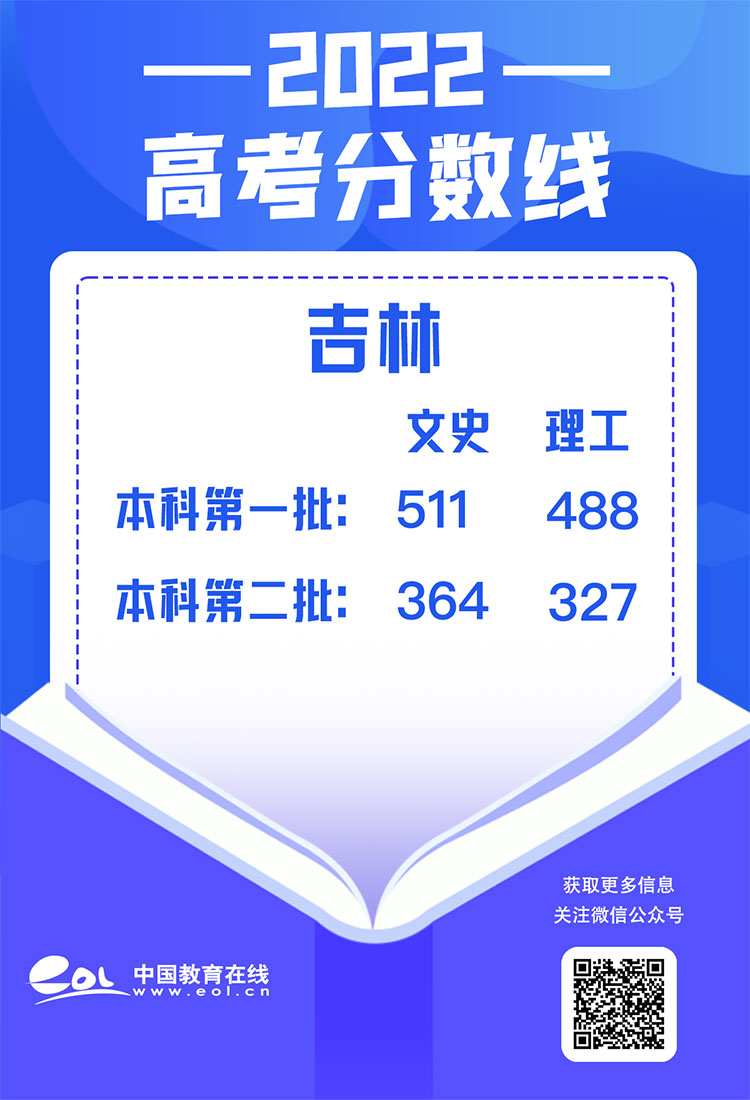 吉林:文科一本线为511分、二本线为364分