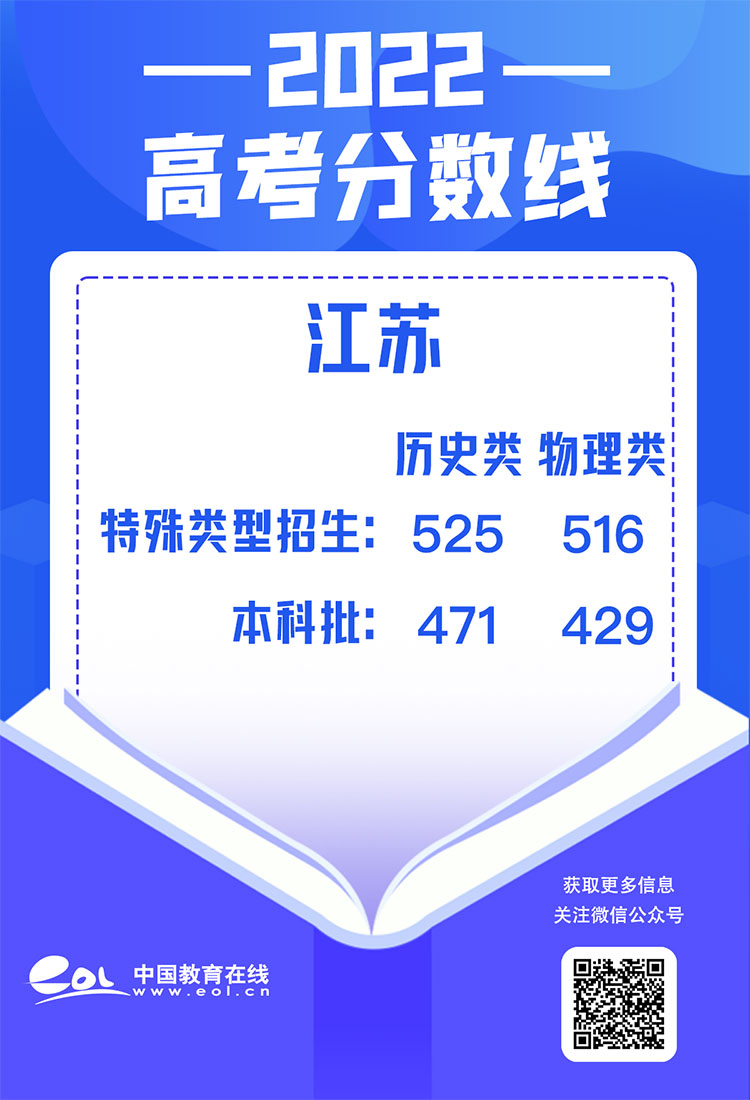 江苏:本科分数线为历史类471分