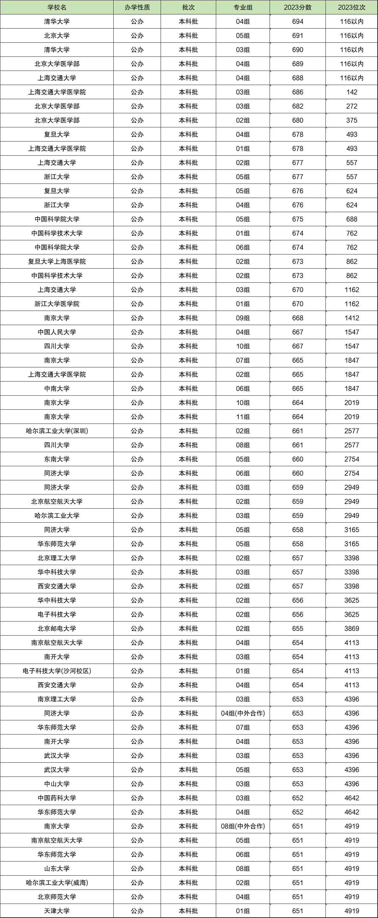 根据2023年全国各大学在江苏省的招录数据,小编整理了2023年在江苏省本科最低位次录取的本科高校名单。