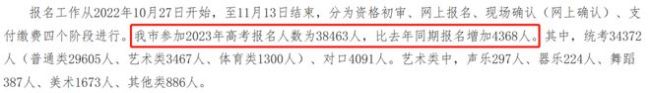 1)张家口:2023年高考报名38463人,比去年同期报名增加4368人。