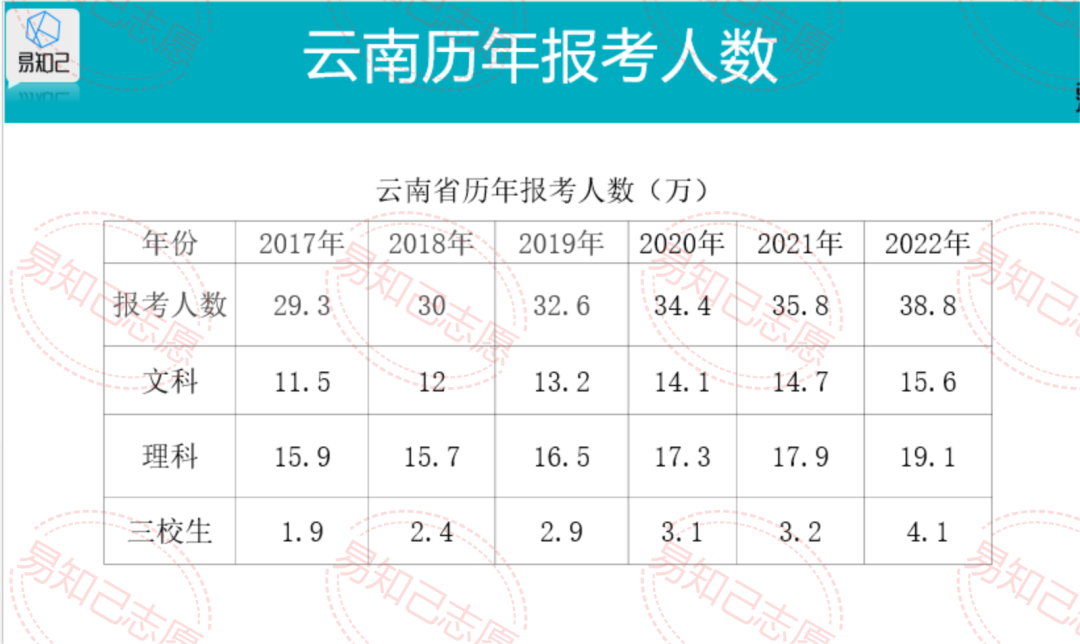 2022年云南省高考报名总人数达38.83万人,其中文史类考生有15.63万人,理工类考生有19.11万人。