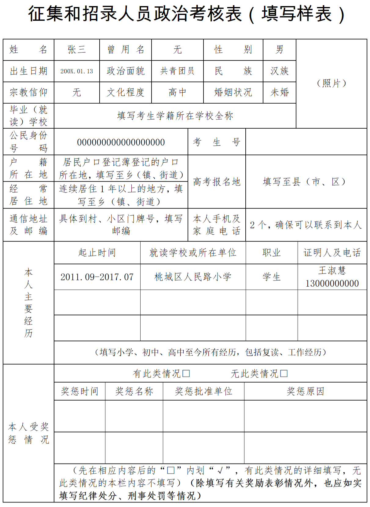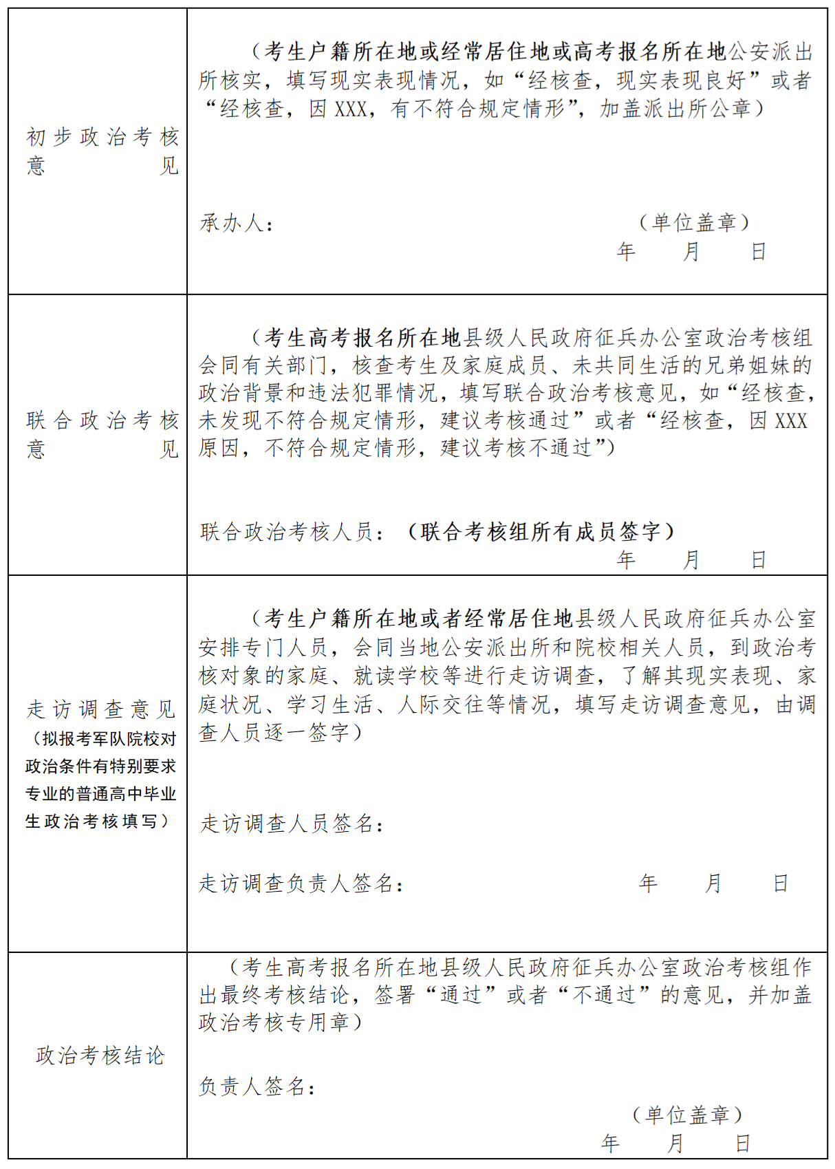 政治面貌良好,志愿为国防事业服务,通过军队院校的政治审查程序,确保无不良记录和问题。