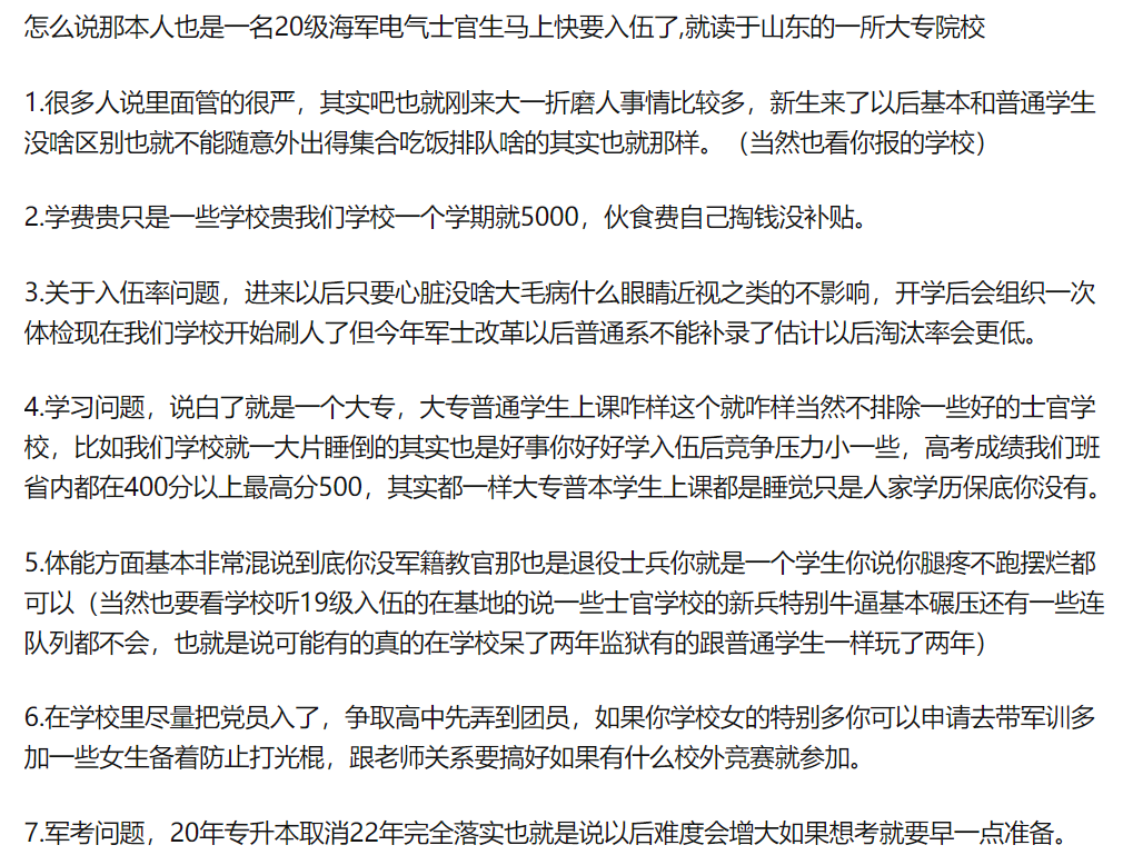 为大家整理了一些学生对于定向士官报考的真实经历和感受,方便大家了解: