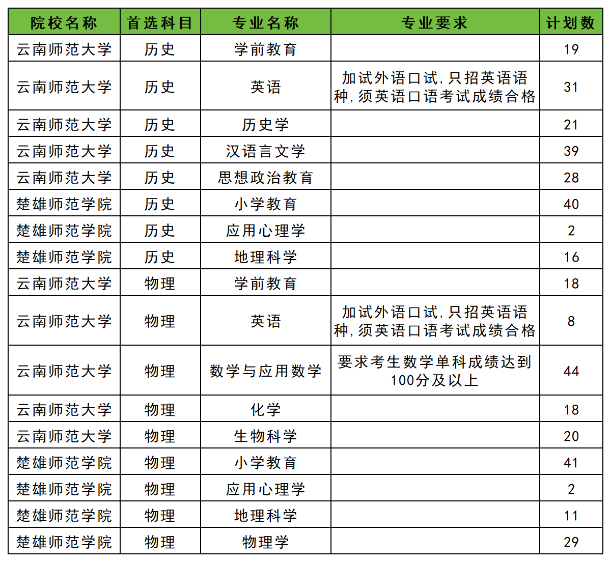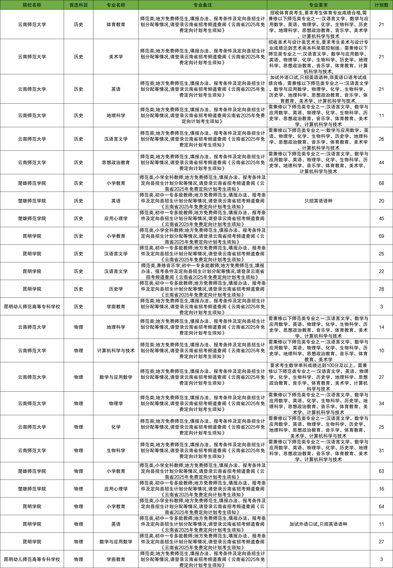 注:本文参照2025年云南地方公费定向培养师范生招生计划整理,包含公费师范生和优师计划师范生。