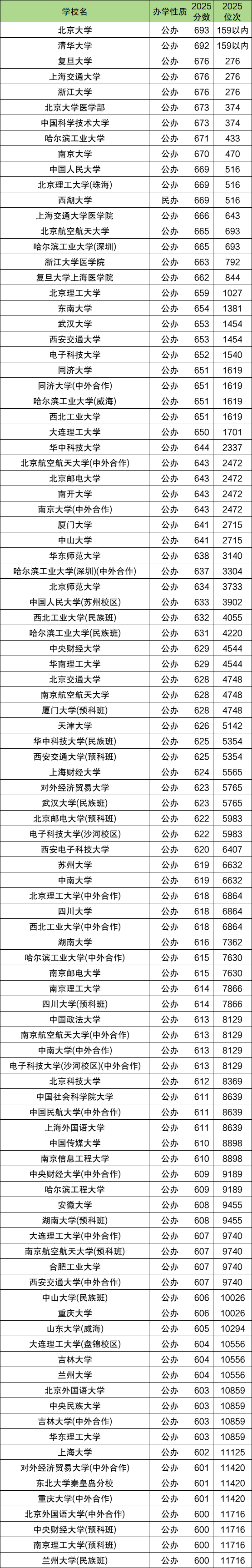 各省录取分数线不一样,本文选取的是重庆市招录数据,按照全国大学2025年录取分数线高低排名,为大家整理以下内容。