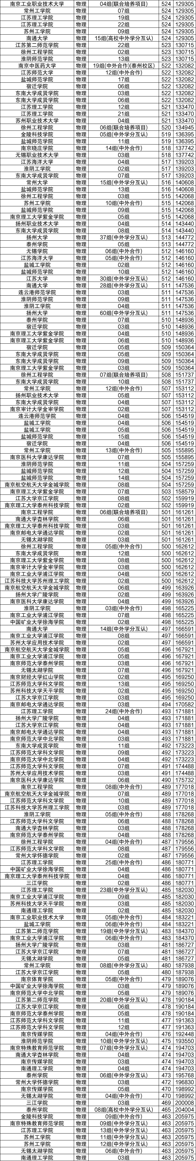 2025年江苏物理组本科各大学录取分数线整体位于463分到661分之间,分数最高的院校专业组是:南京大学07组,2025年最低分数线是661分,位次排名是1835位。