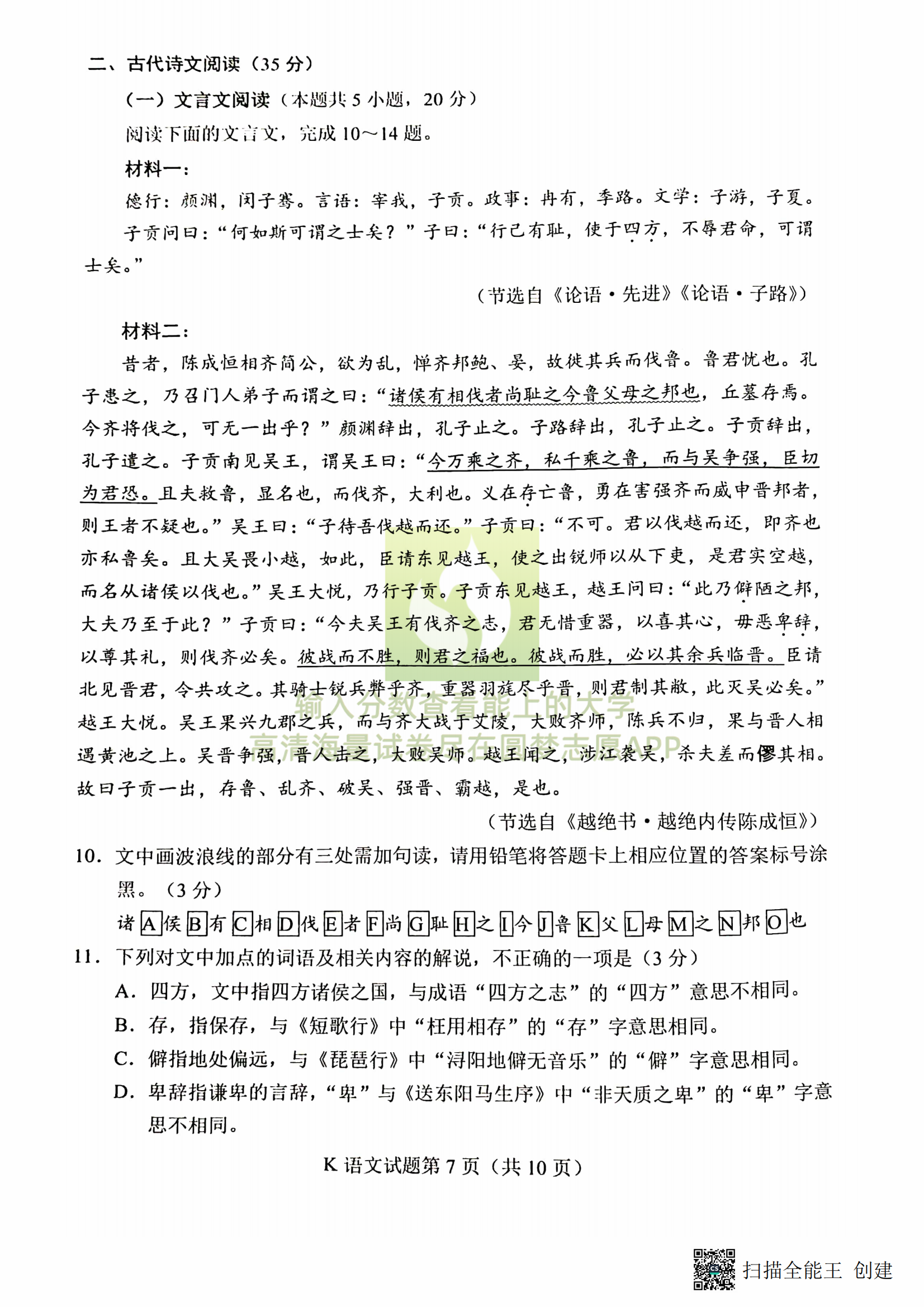 一、2023老高考新课标适应性测试语文试卷及参考答案