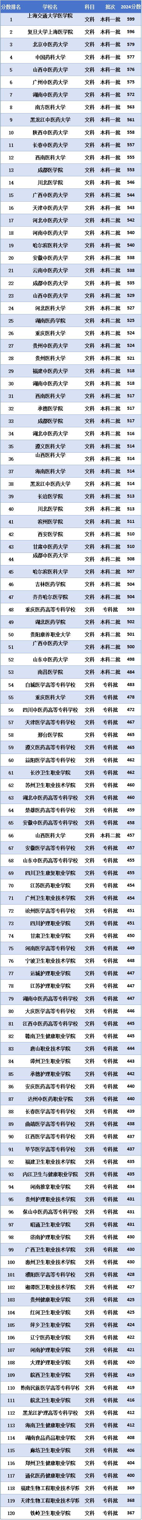 2024年四川文科医科大学院校分数线排名一览表如下: