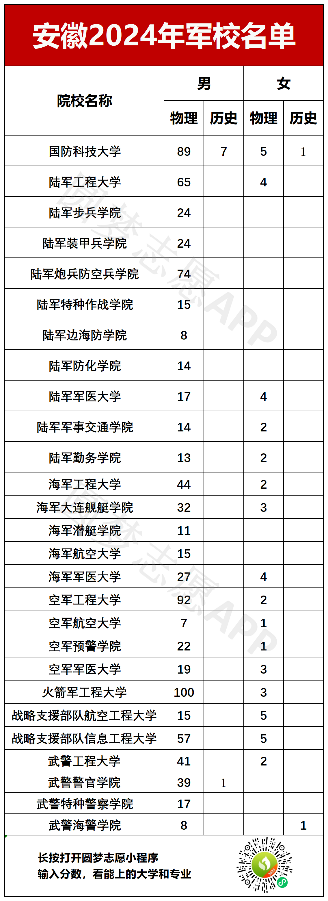 一、安徽军校名单及招生计划