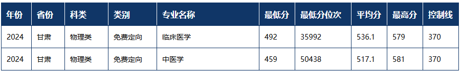2024年甘肃医学院定向医学生录取分数线最低是448分,定向至甘南州。