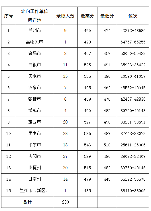 在接下来的内容中,小编就为各位具体展示甘肃免费医学定向生分数线,招生计划表等相关内容。