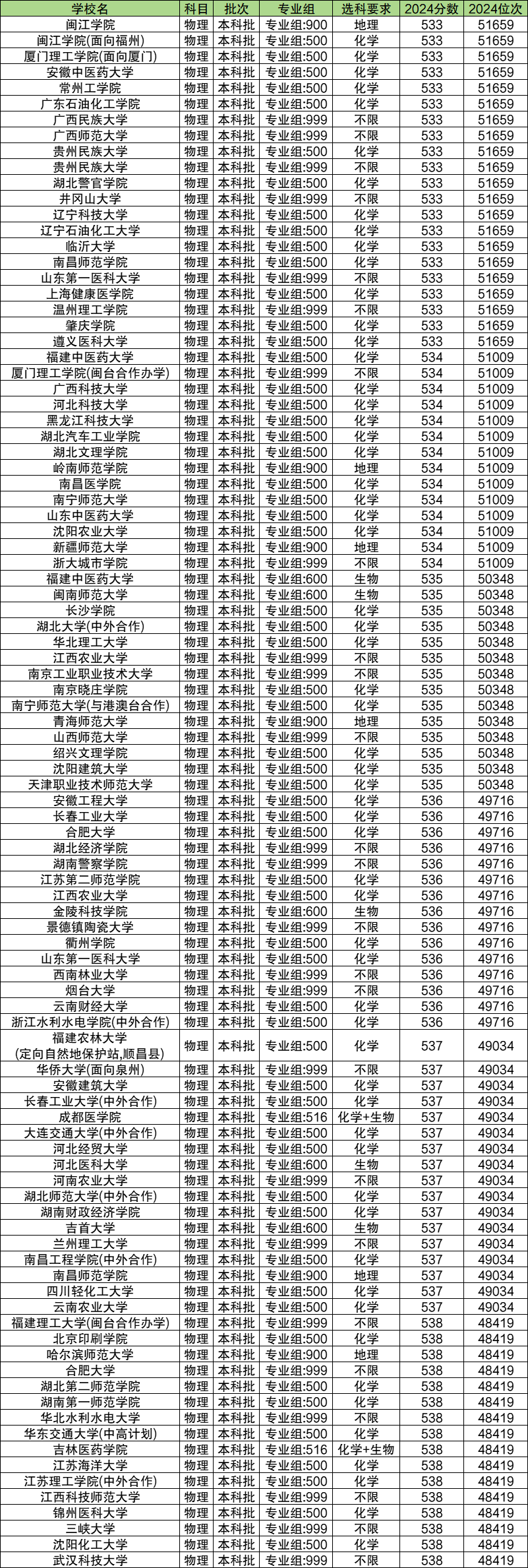 福建高考5万名左右(48000~52000名)能报考的大学名单一览表(物理类):