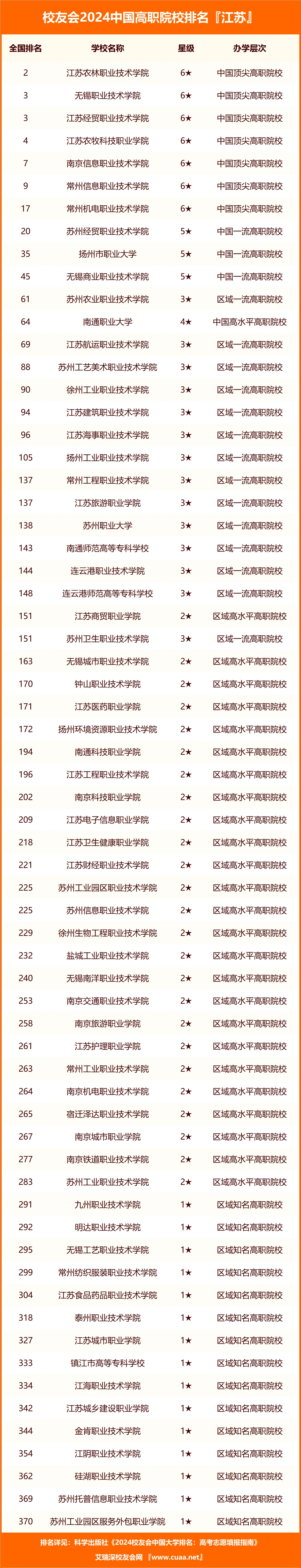 以下为江苏高职专科院校排名一览表: