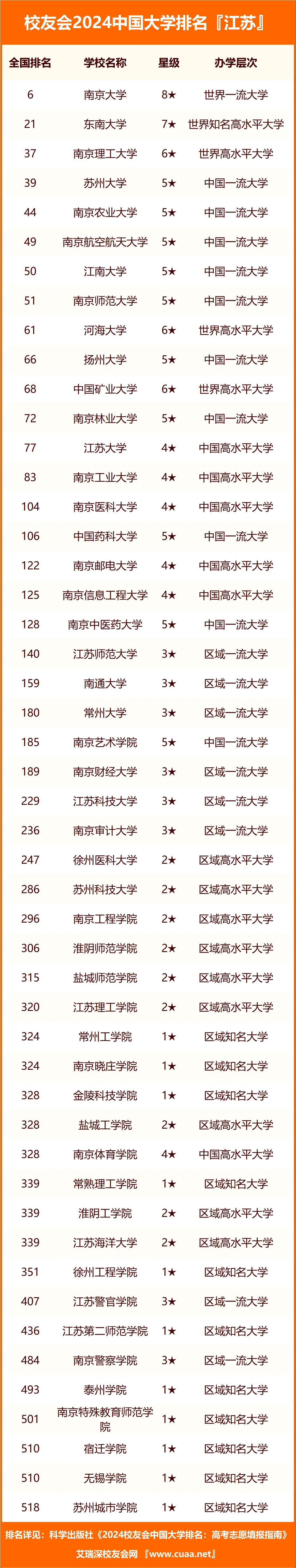 根据2024年校友会公布的中国大学排行榜来看,江苏公办本科大学排名前十名的是: