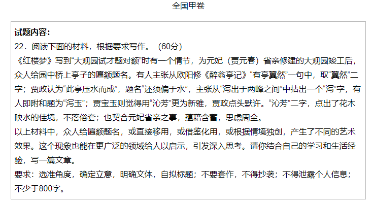 一. 2022年广西高考语文作文题目(全国甲卷)