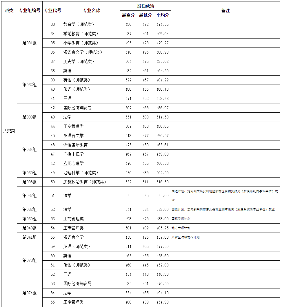 历史类最低分:426分,超本科线21分,汉语言文学。