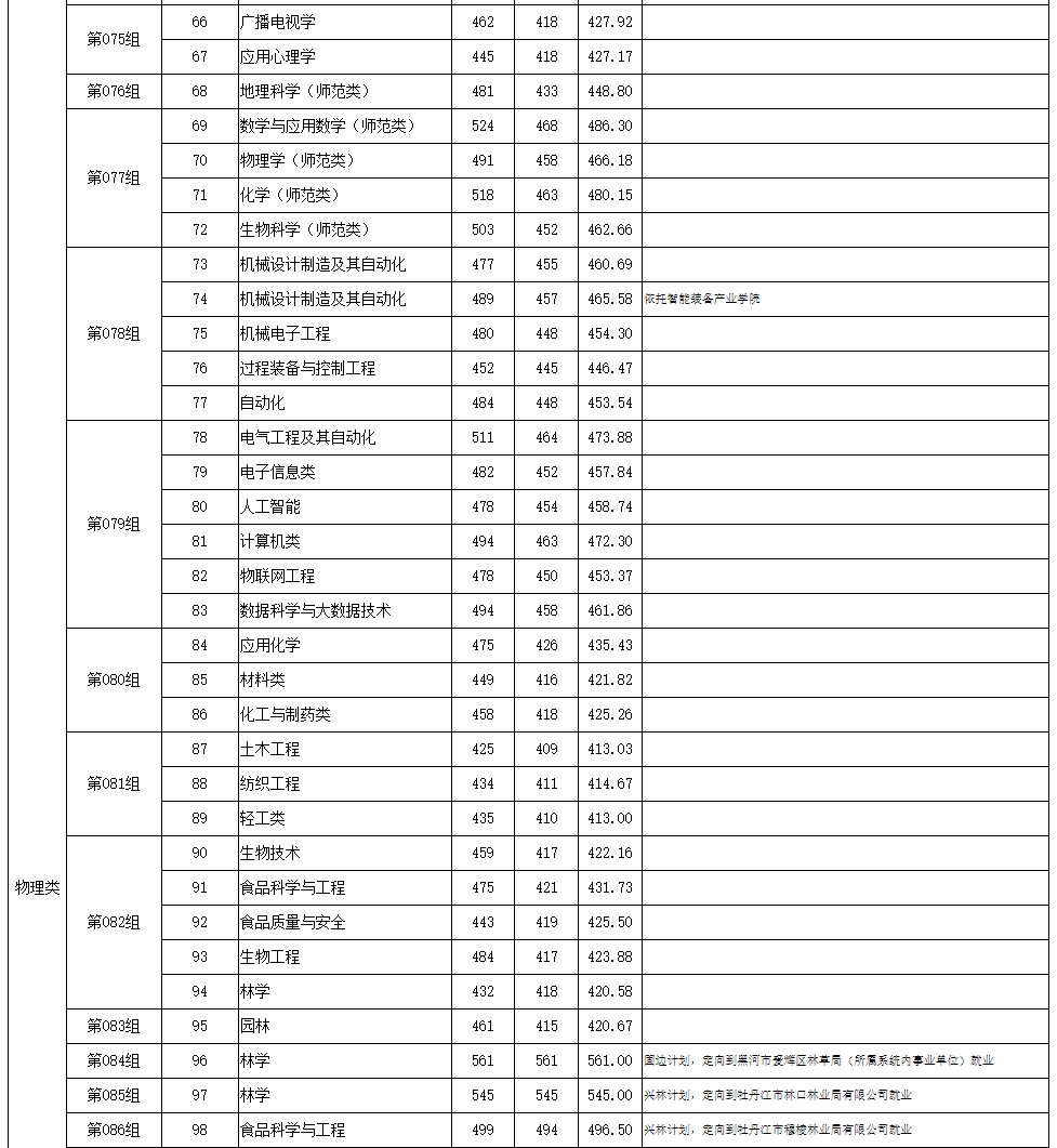 物理类最低分:449分,超本科线89分,037组(地方专项);