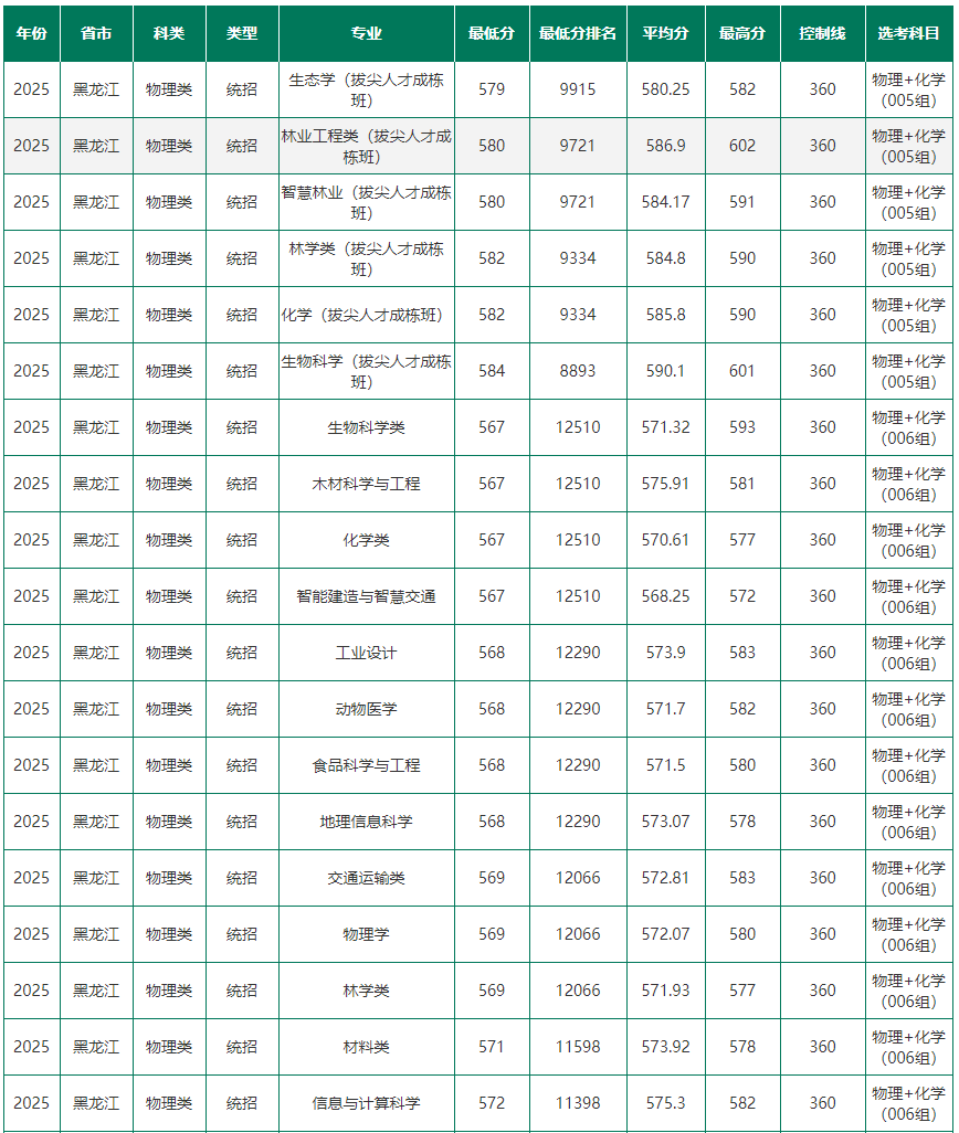 2025年东北林业大学在省内招生最低分数范围为556分-588分,各科类最低分详情如下: