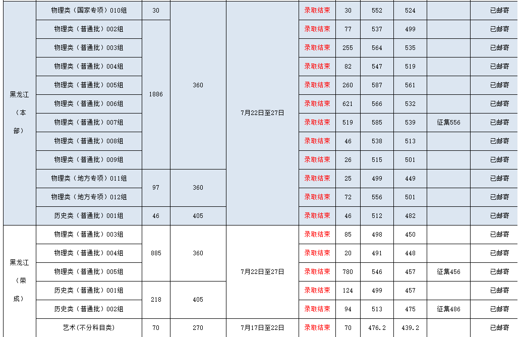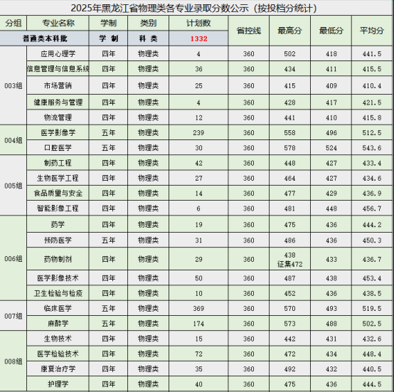 注:2025年黑龙江物理类本科线360分、专科线160分;历史类本科线405分、专科线160分。