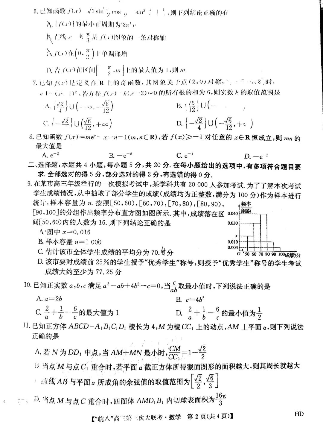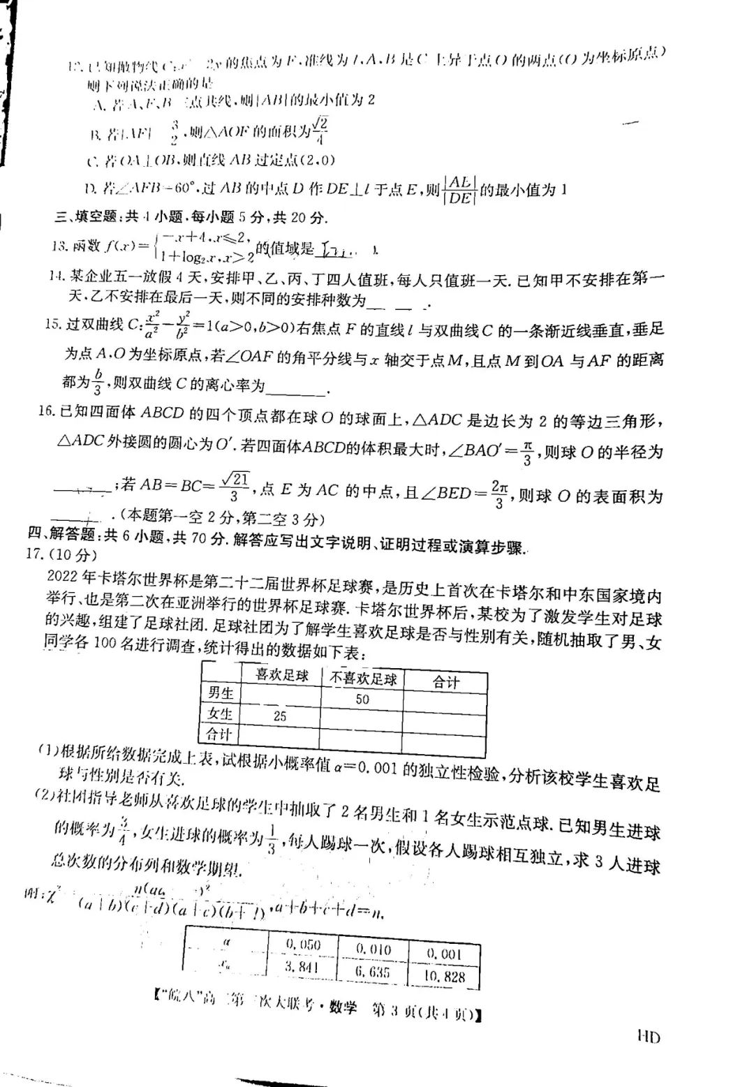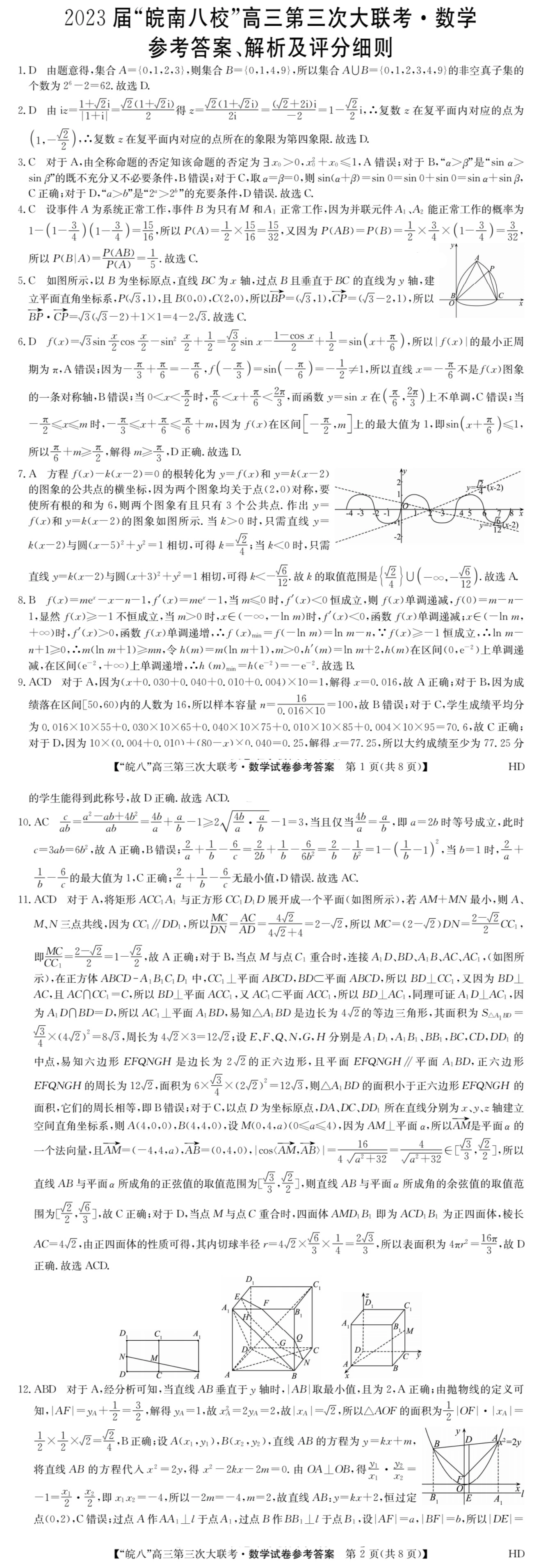 一、2023皖南八校第三次联考数学试卷