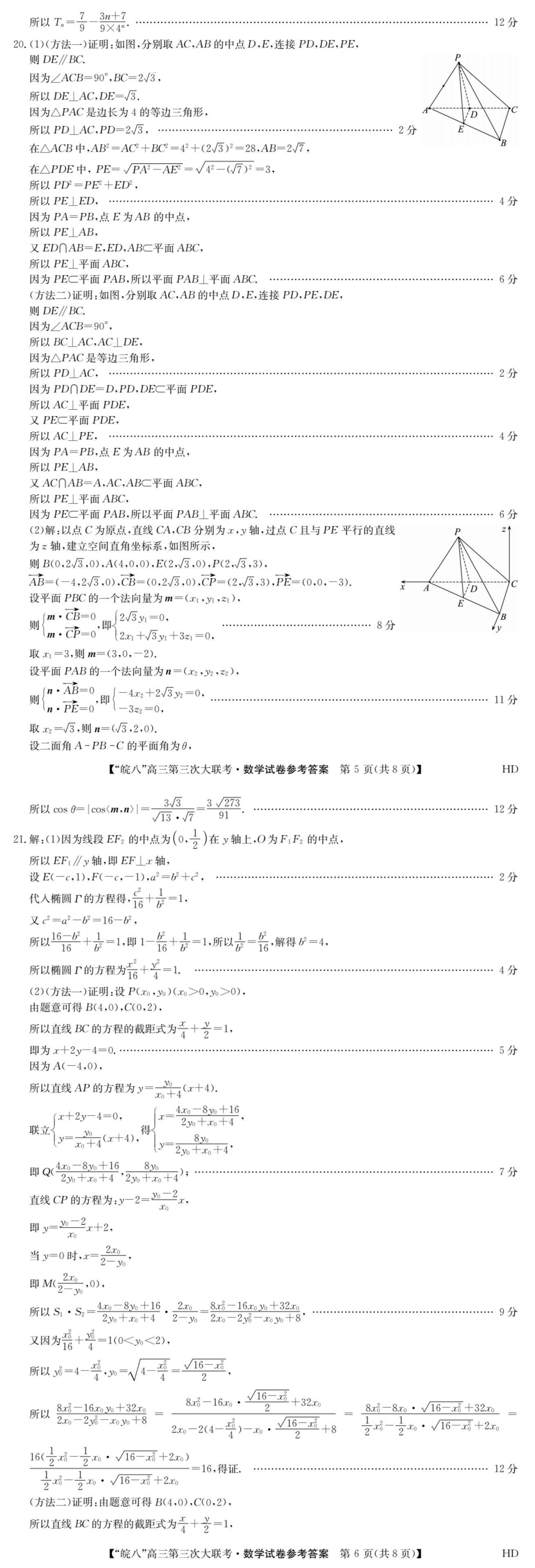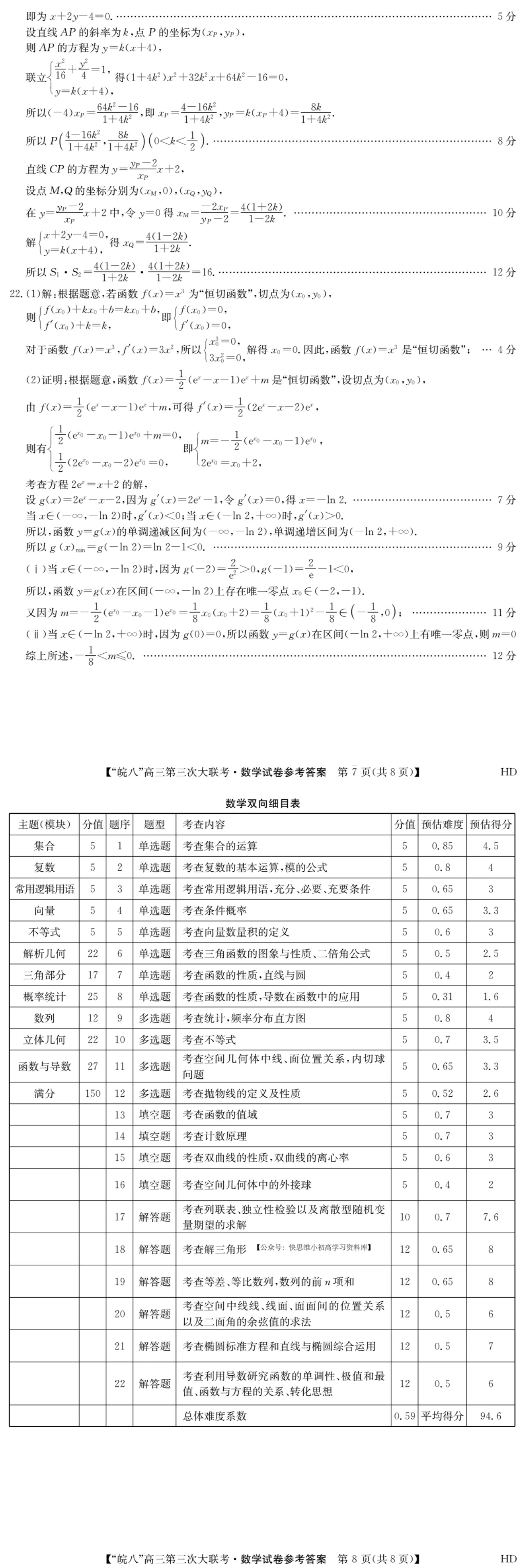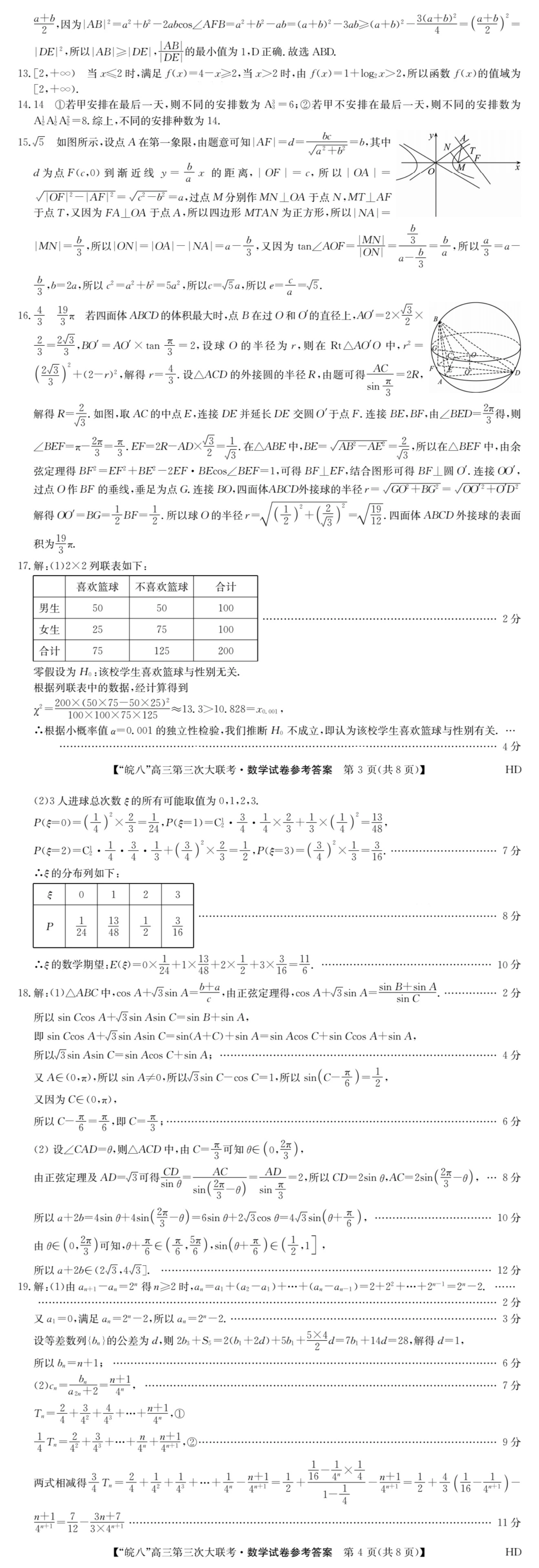 二、2023皖南八校第三次联考数学参考答案