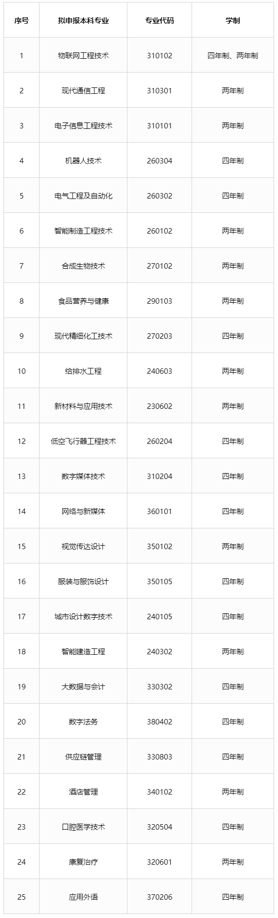 预计在2025年本科招生专业的基础上,新增25个职业本科专业,名单如下: