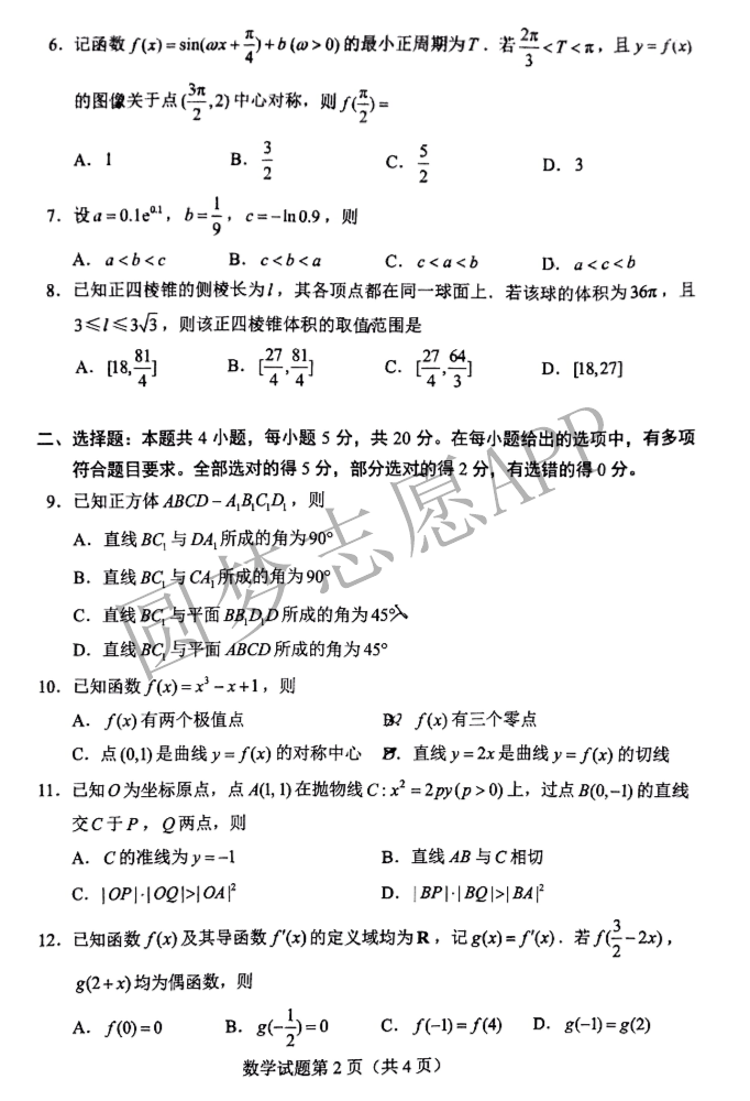 二.2022年湖南高考数学参考答案汇总