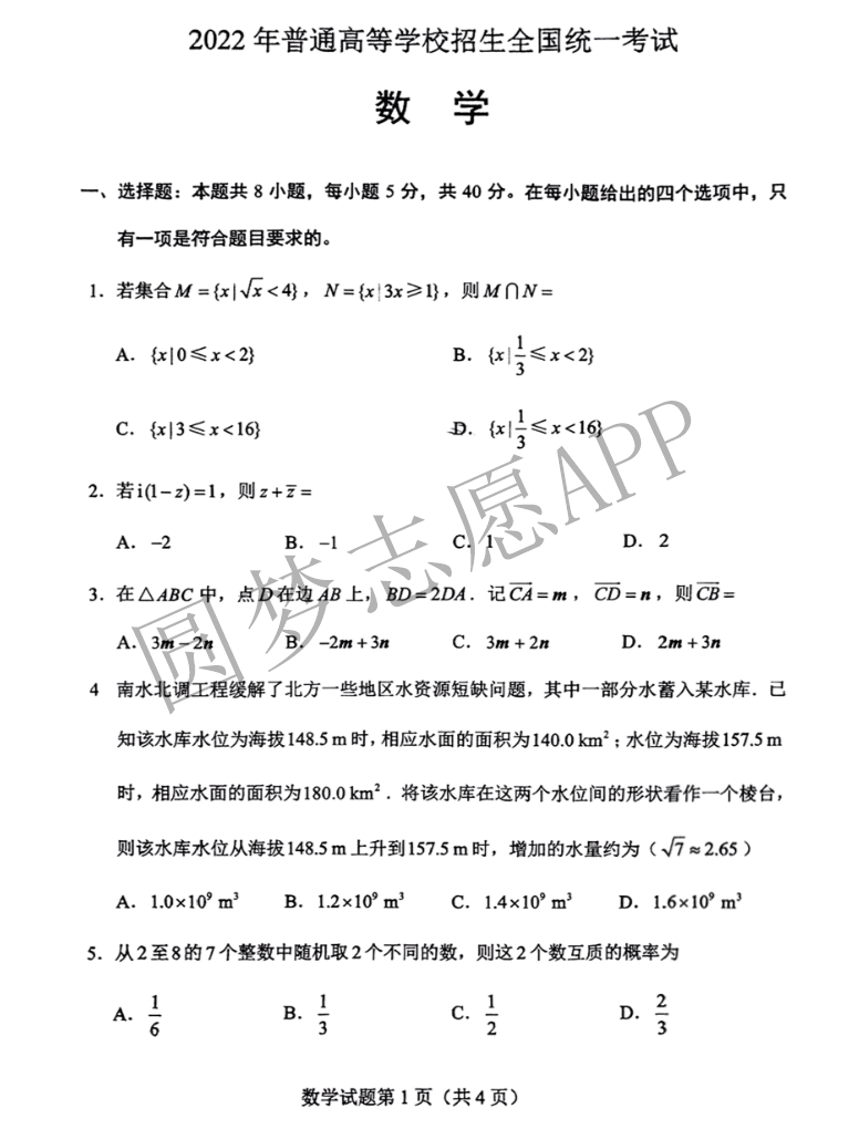 一.2022年湖南高考数学真题