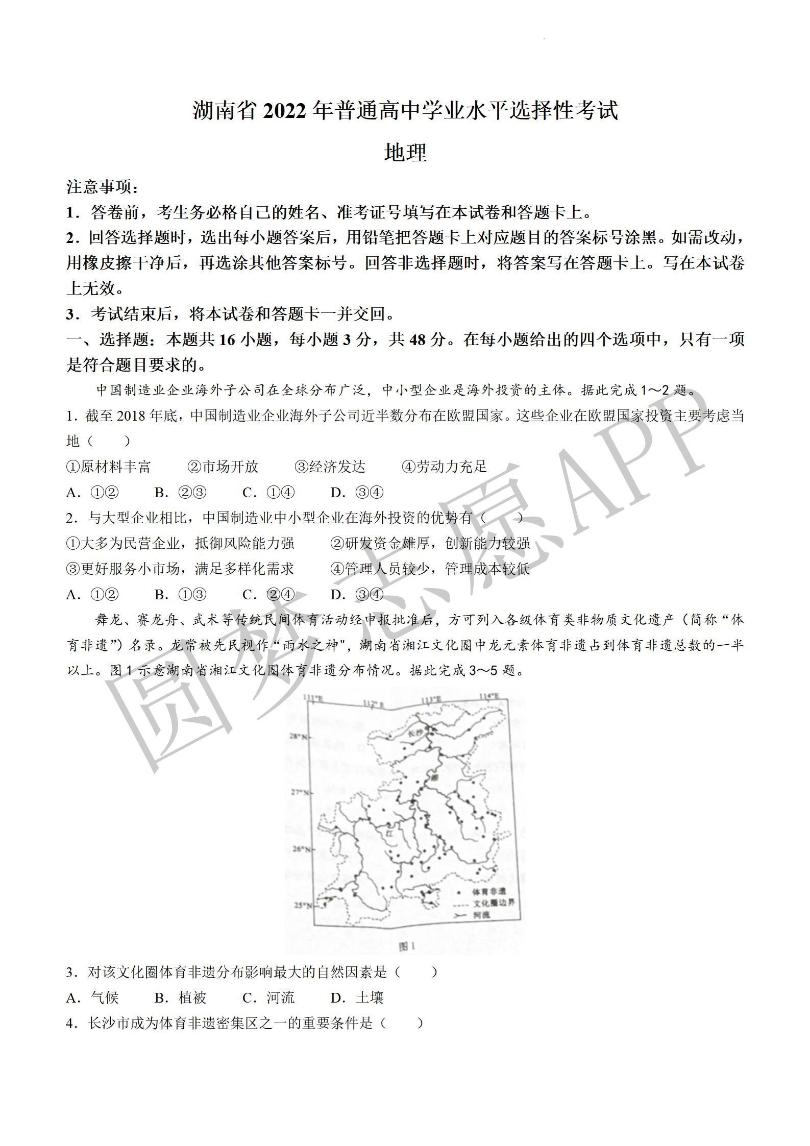二.2022年湖南高考地理参考答案汇总