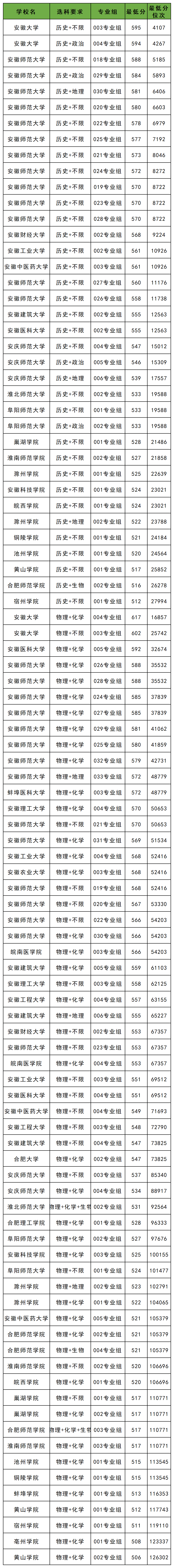 3、安徽:历史类最低512分、物理类最低506分