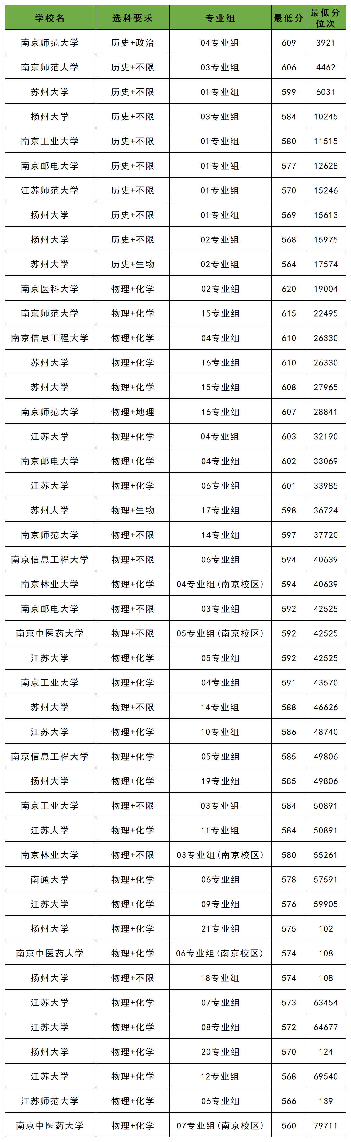4、江苏:历史类最低564分、物理类最低560分
