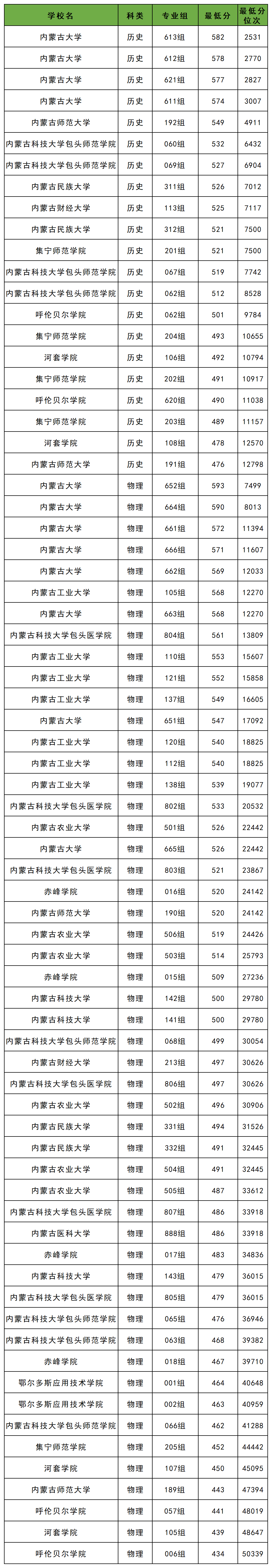 5、内蒙古:历史类最低476分、物理类最低434分