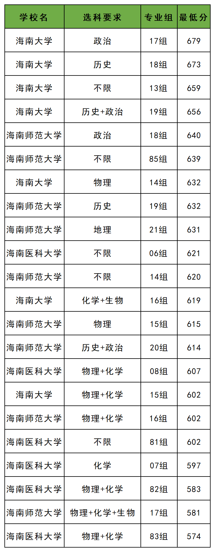 1、海南:最低574分