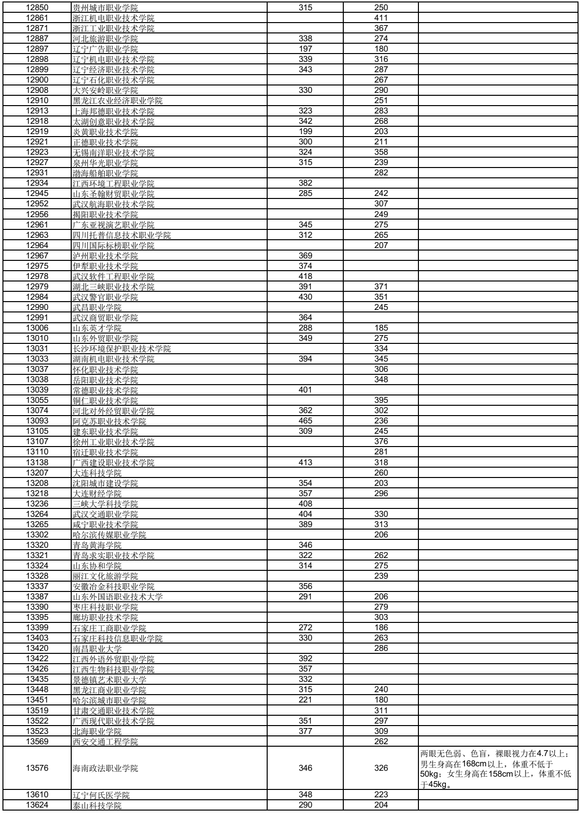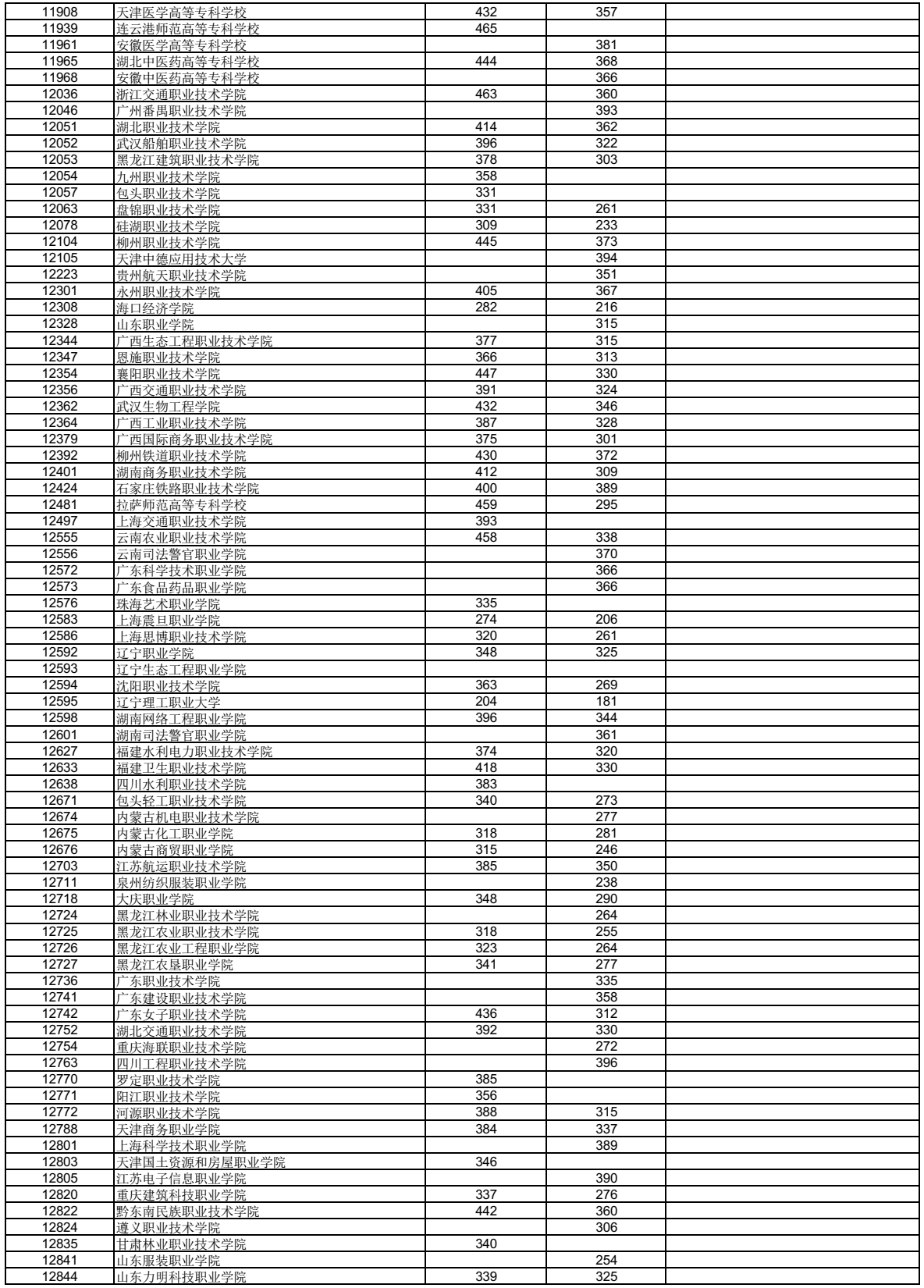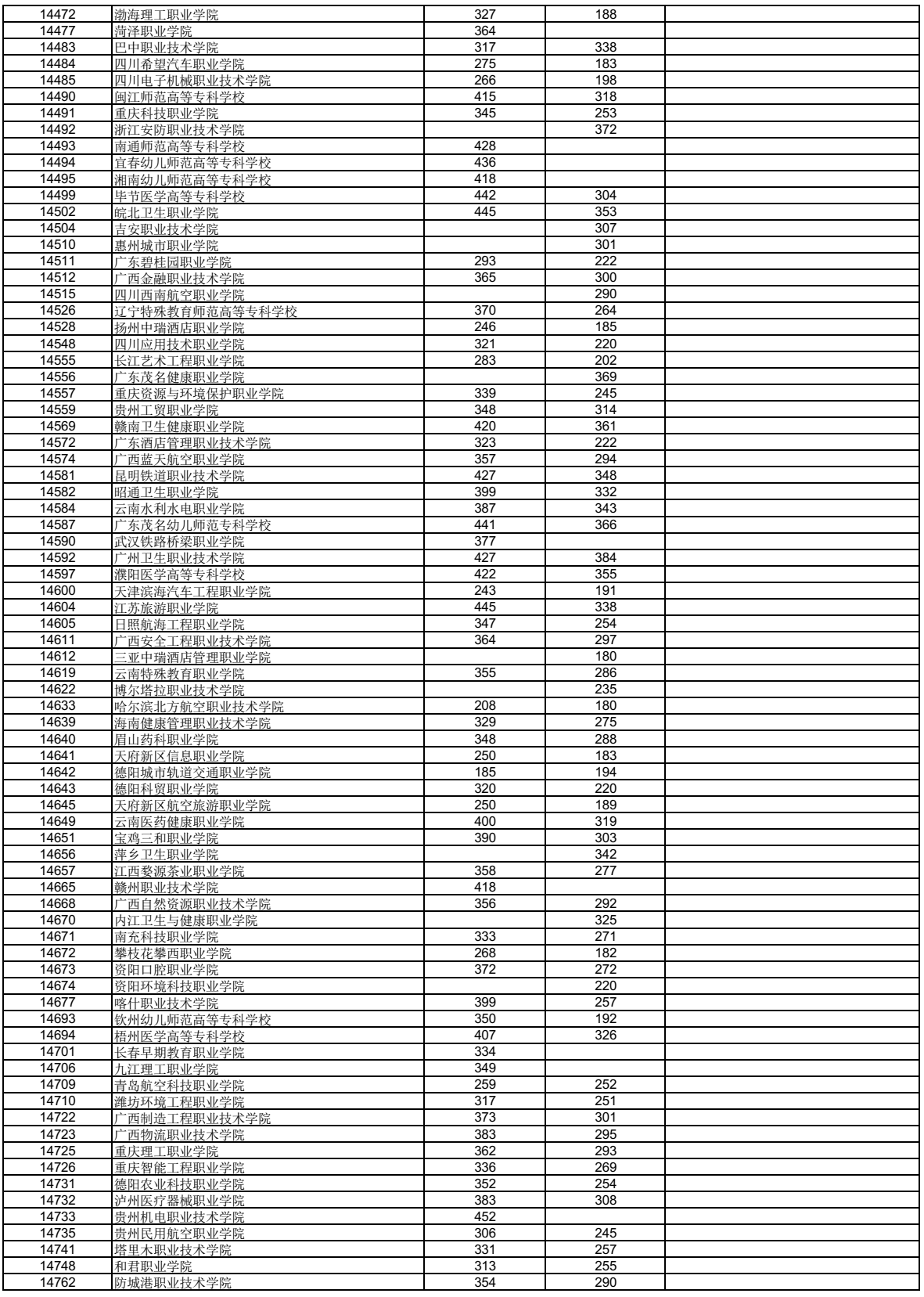 广西高职高专普通批第二次征集志愿全国学校名单及分数线如下图