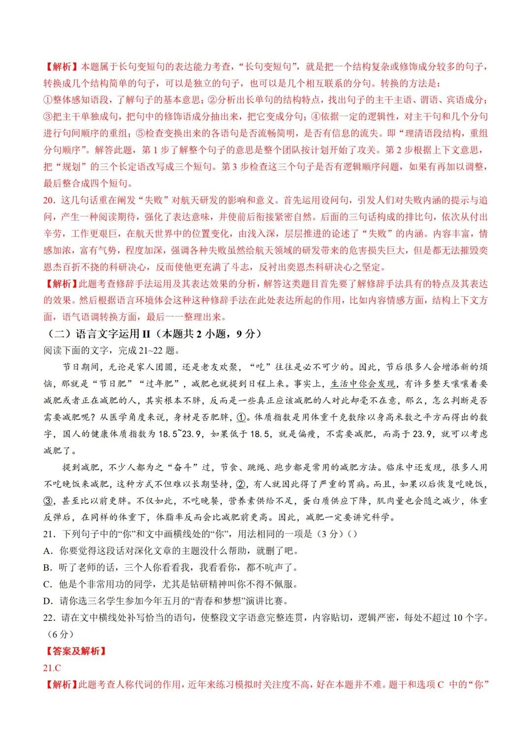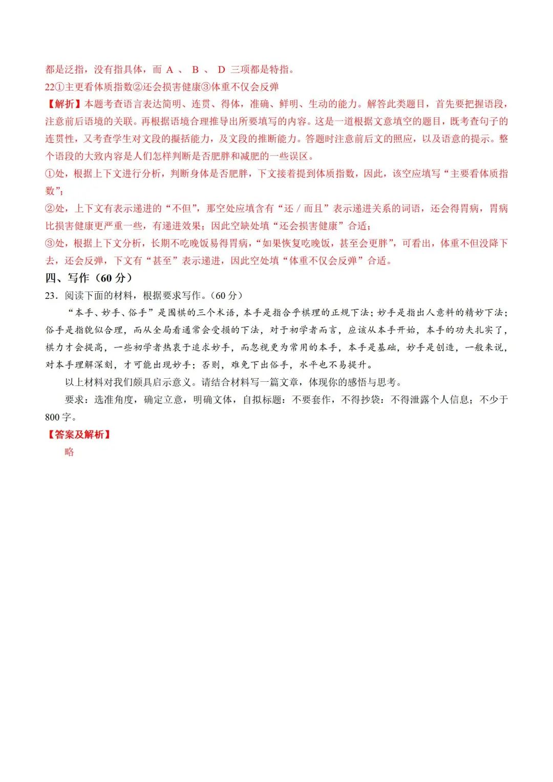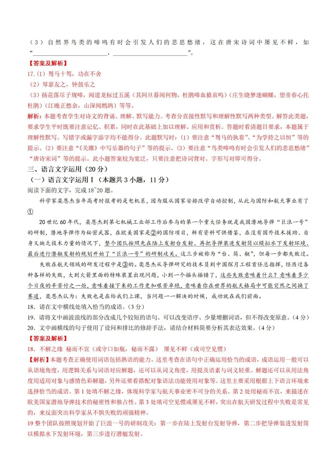 一. 2022全国新高考一卷语文试卷及答案汇总