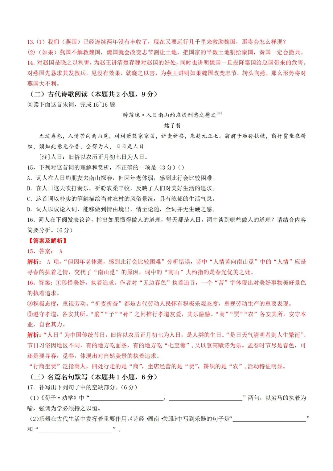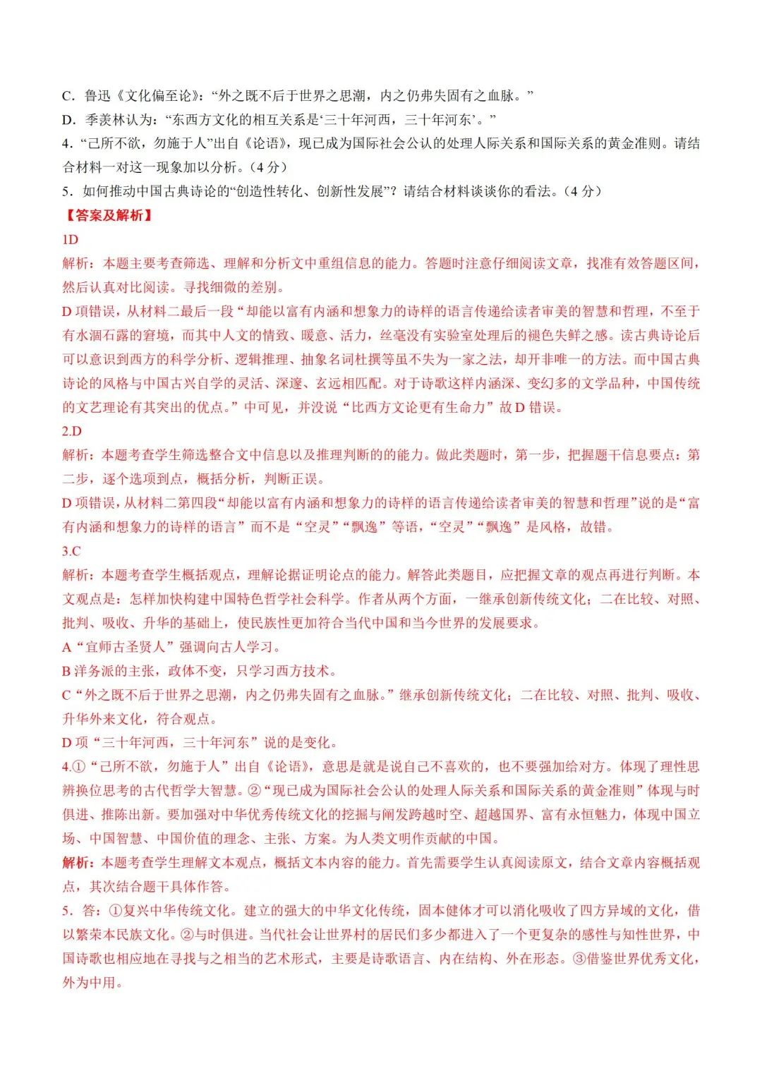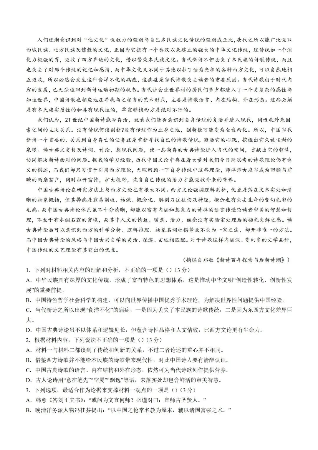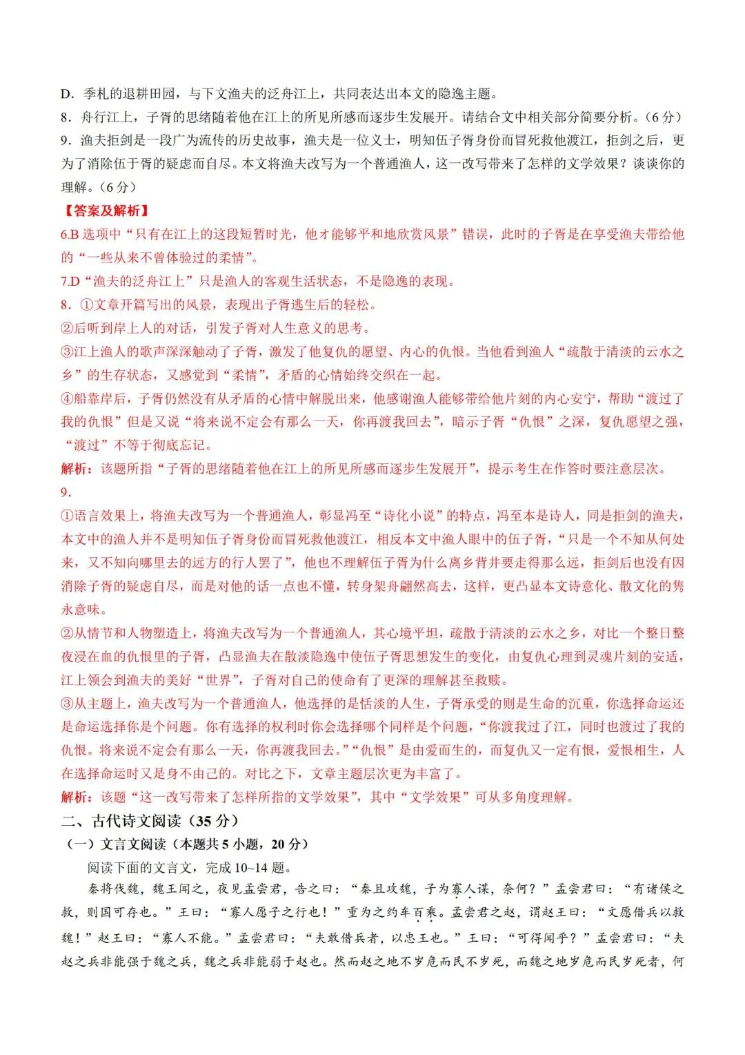一. 2022全国新高考一卷语文试卷及答案汇总